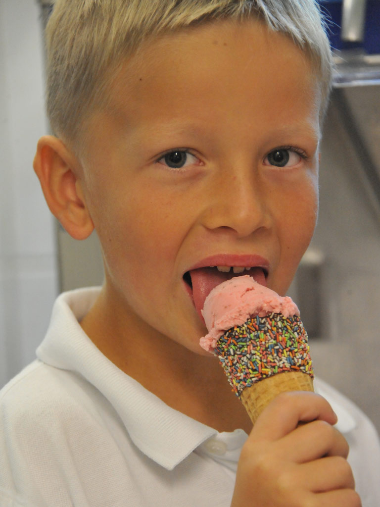 Zuständig für die 40 Milch-Ziegen ist Petra. Sie sind ihre ganze Leidenschaft und sie hat sich damit am Hof einen Aufgabenbereich geschaffen, der sie mit Freude erfüllt. Auf die Idee Bio-Ziegeneis herzustellen, kam Bernd krankheitsbedingt. „Ich musste eine Diät machen und gänzlich auf Kuhmilchprodukte verzichten. Und so bin ich auf die Alternative Ziegenmilch gestoßen, die besser verdaulich ist„, erzählt Pobaschnig. Das Projekt hat Zukunft. Die Nachfrage in der Region ist groß und steigt kontinuierlich. Neben der wesentlich höheren Wertschöpfung ist die Bio-Ziegeneisproduktion zudem ein praktikabler Weg, die großen Milchmengen im Sommer optimal haltbar zu machen. Derzeit gibt es zwölf verschiedene Geschmacksrichtungen in Bio. Damit setzt die Familie auf Qualität vor Quantität.
