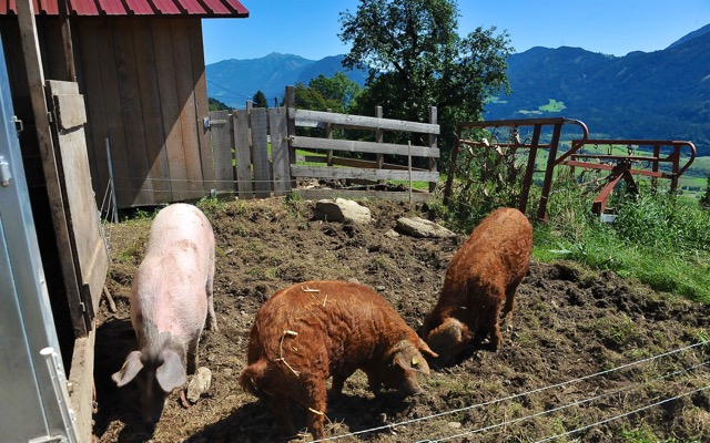 … nach dem Motto geht’s den Tieren gut, geht’s auch den Menschen gut gearbeitet wird. Fleischhauer und Koch weiß Georg Weiss nicht nur um die Fleischqualität alter Rassen Bescheid, sondern auch um den Einfluss des Wohlbefindens der Tiere auf die Produktqualität. In kleinen Stückzahlen und großer Vielfalt wird am Langnerhof für die Direktvermarktung produziert.