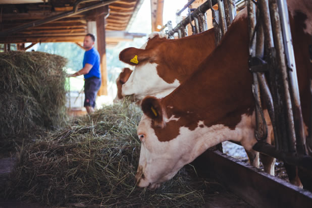 17 Milchkühe, 15 Jungtiere, 10 Legehennen, 2 Pfauen