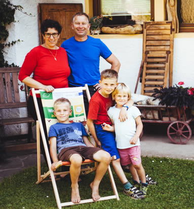Unser Ziel ist es, so mit der Natur zu arbeiten, dass wir von unserem eher kleineren Hof gut leben können“. Nach diesem Motto führen Christian und Gerlinde Weger ihren Urlaubsbetrieb in traumhafter Einzellage auf der Sonnenseite des Gailtales. Der Großteil der Milch von den 17 Milchkühen geht als Biowiesenmilch an die Kärntnermilch. Daneben gibt es aber auch eine breite Palette von hofeigenen Produkten – Milchprodukte, Eier und Holzofenbrot – mit denen nicht nur die hauseigenen Gäste verwöhnt, sondern auch regionale Wirte und der Bioladen in St. Daniel beliefert werden. Zur Philosophie des Hofes passend sind sie auch Teil der Slow Food Gemeinschaft Village St. Daniel.